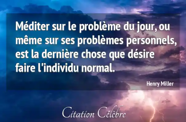 Méditer sur le problème du jour, ou même sur ses problèmes personnels, est la dernière chose que désire faire l'individu normal.