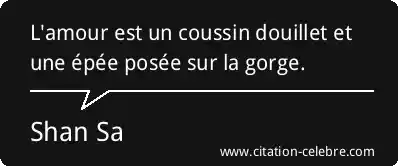 L'amour est un coussin douillet et une épée posée sur la gorge.