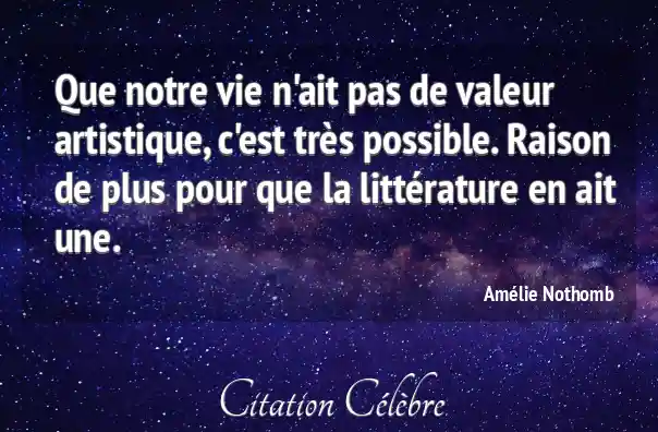 Que notre vie n'ait pas de valeur artistique, c'est très possible. Raison de plus pour que la littérature en ait une.