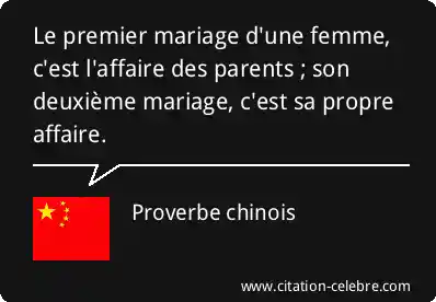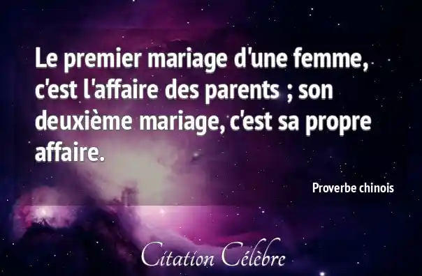 Le premier mariage d'une femme, c'est l'affaire des parents ; son deuxième mariage, c'est sa propre affaire.