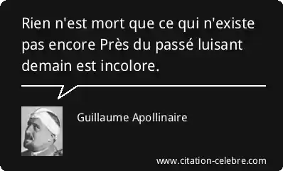 Rien n'est mort que ce qui n'existe pas encore Près du passé luisant demain est incolore.