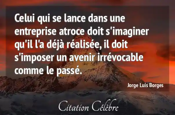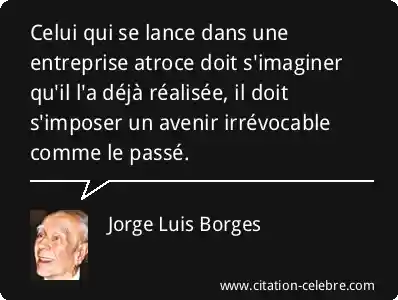 Celui qui se lance dans une entreprise atroce doit s'imaginer qu'il l'a déjà réalisée, il doit s'imposer un avenir irrévocable comme le passé.