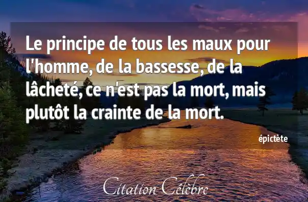 Le principe de tous les maux pour l'homme, de la bassesse, de la lâcheté, ce n'est pas la mort, mais plutôt la crainte de la mort.