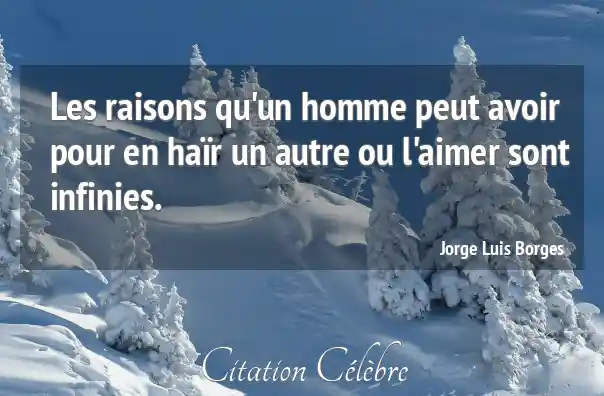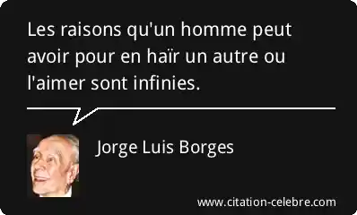 Les raisons qu'un homme peut avoir pour en haïr un autre ou l'aimer sont infinies.