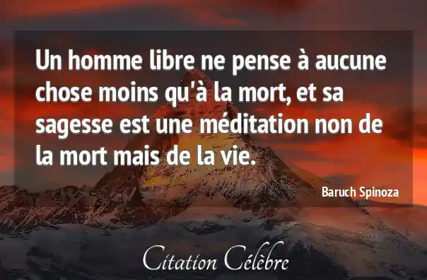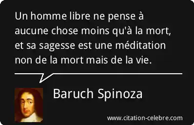 Un homme libre ne pense à aucune chose moins qu'à la mort, et sa sagesse est une méditation non de la mort mais de la vie.