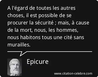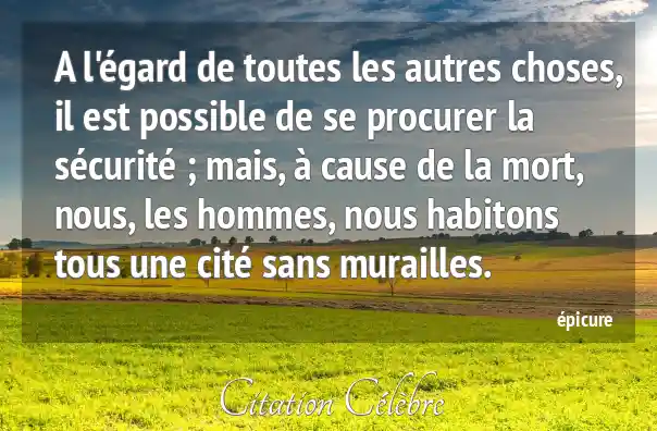 A l'égard de toutes les autres choses, il est possible de se procurer la sécurité ; mais, à cause de la mort, nous, les hommes, nous habitons tous une cité sans murailles.