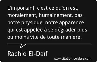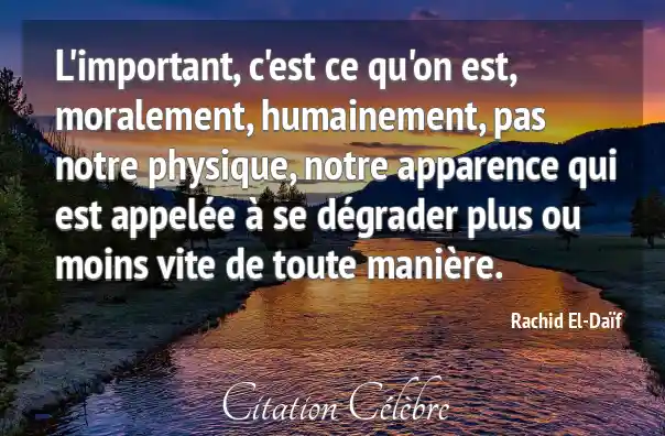 L'important, c'est ce qu'on est, moralement, humainement, pas notre physique, notre apparence qui est appelée à se dégrader plus ou moins vite de toute manière.