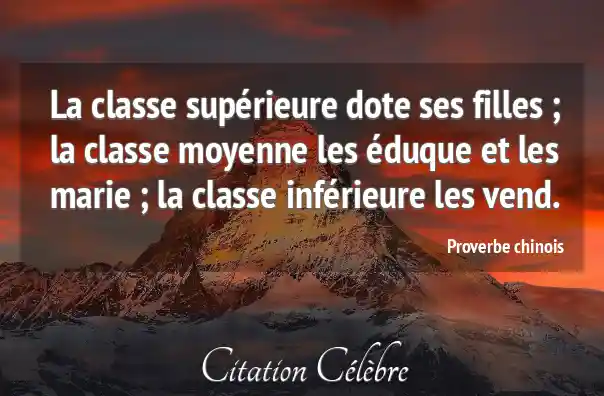 La classe supérieure dote ses filles ; la classe moyenne les éduque et les marie ; la classe inférieure les vend.