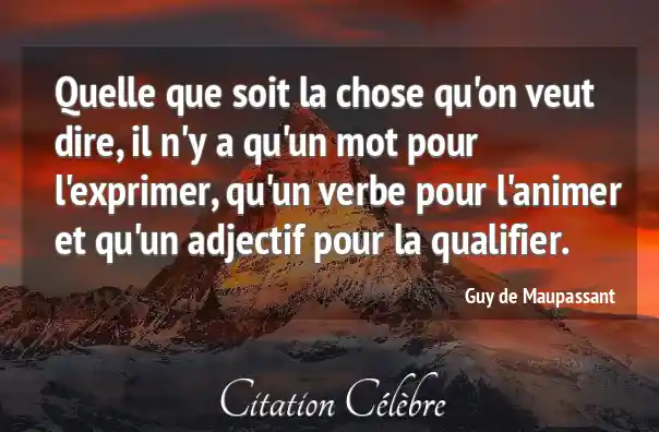 Quelle que soit la chose qu'on veut dire, il n'y a qu'un mot pour l'exprimer, qu'un verbe pour l'animer et qu'un adjectif pour la qualifier.