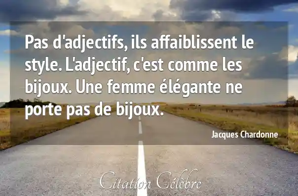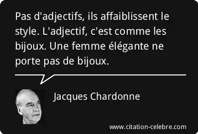 Pas d'adjectifs, ils affaiblissent le style. L'adjectif, c'est comme les bijoux. Une femme élégante ne porte pas de bijoux.