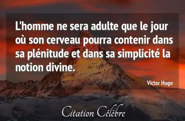 L'homme ne sera adulte que le jour où son cerveau pourra contenir dans sa plénitude et dans sa simplicité la notion divine.