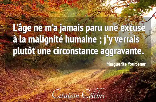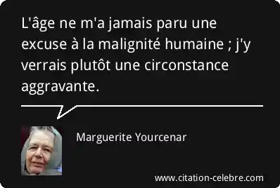 L'âge ne m'a jamais paru une excuse à la malignité humaine ; j'y verrais plutôt une circonstance aggravante.