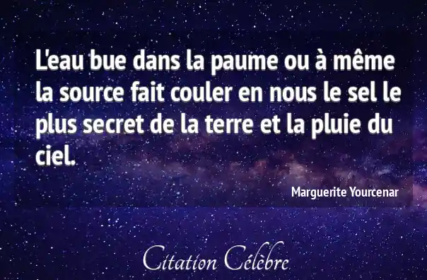 L'eau bue dans la paume ou à même la source fait couler en nous le sel le plus secret de la terre et la pluie du ciel.