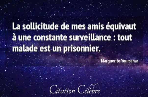 La sollicitude de mes amis équivaut à une constante surveillance : tout malade est un prisonnier.