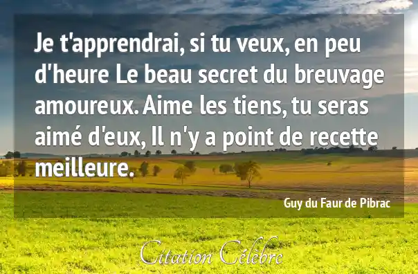 Je t'apprendrai, si tu veux, en peu d'heure Le beau secret du breuvage amoureux. Aime les tiens, tu seras aimé d'eux, Il n'y a point de recette meilleure.