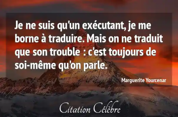 Je ne suis qu'un exécutant, je me borne à traduire. Mais on ne traduit que son trouble : c'est toujours de soi-même qu'on parle.