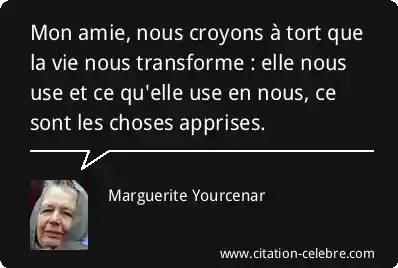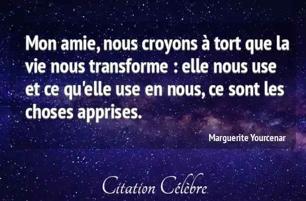 Mon amie, nous croyons à tort que la vie nous transforme : elle nous use et ce qu'elle use en nous, ce sont les choses apprises.