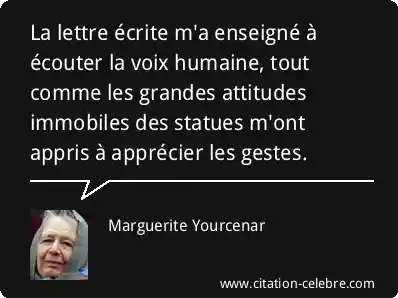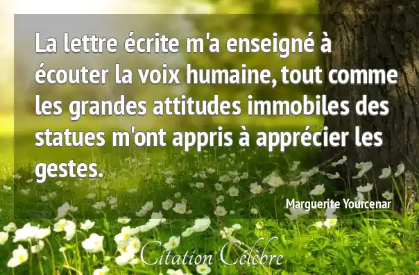 La lettre écrite m'a enseigné à écouter la voix humaine, tout comme les grandes attitudes immobiles des statues m'ont appris à apprécier les gestes.