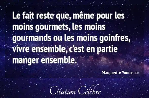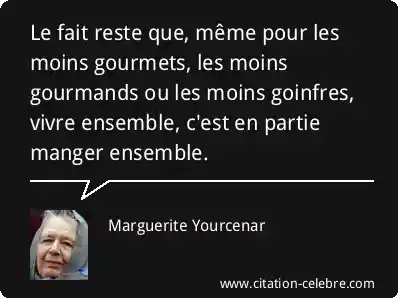 Le fait reste que, même pour les moins gourmets, les moins gourmands ou les moins goinfres, vivre ensemble, c'est en partie manger ensemble.