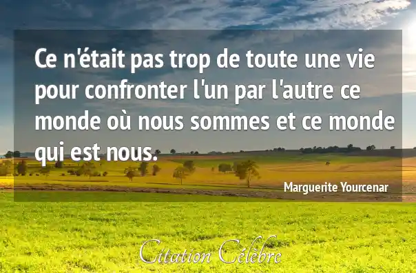 Ce n'était pas trop de toute une vie pour confronter l'un par l'autre ce monde où nous sommes et ce monde qui est nous.