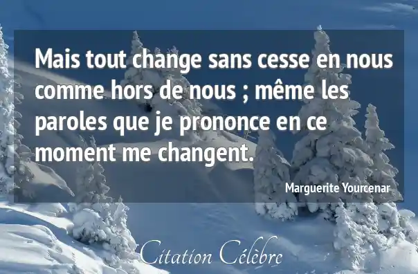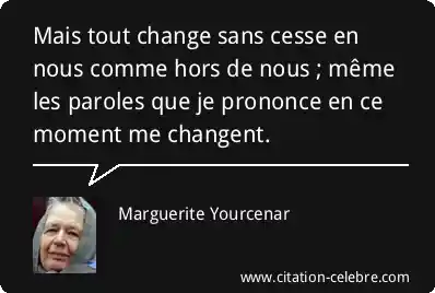 Mais tout change sans cesse en nous comme hors de nous ; même les paroles que je prononce en ce moment me changent.