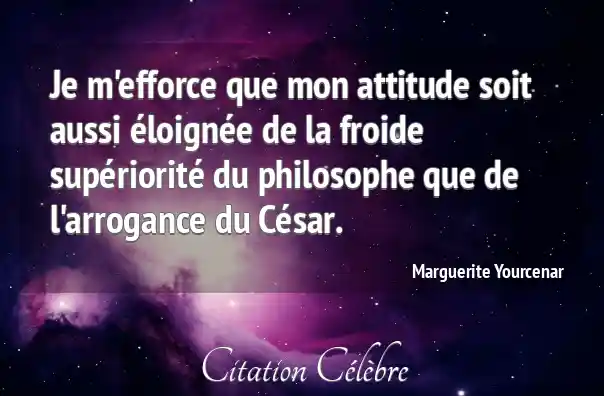 Je m'efforce que mon attitude soit aussi éloignée de la froide supériorité du philosophe que de l'arrogance du César.