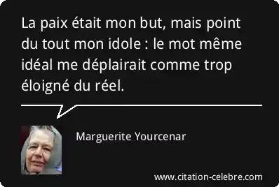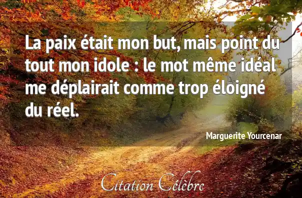 La paix était mon but, mais point du tout mon idole : le mot même idéal me déplairait comme trop éloigné du réel.