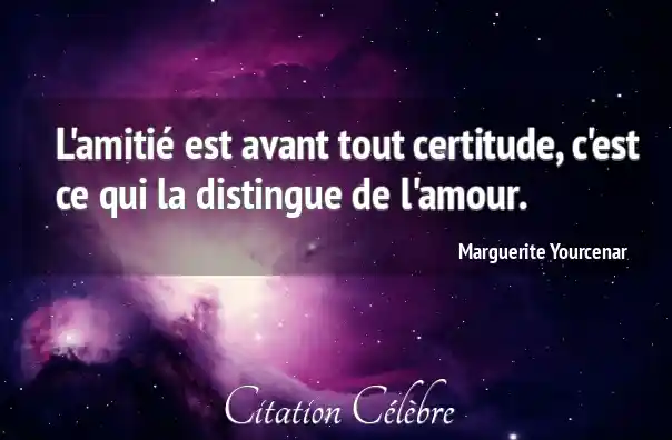 L'amitié est avant tout certitude, c'est ce qui la distingue de l'amour.