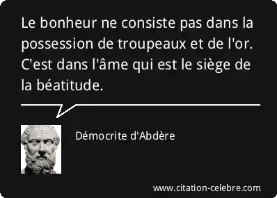 Le bonheur ne consiste pas dans la possession de troupeaux et de l'or. C'est dans l'âme qui est le siège de la béatitude.