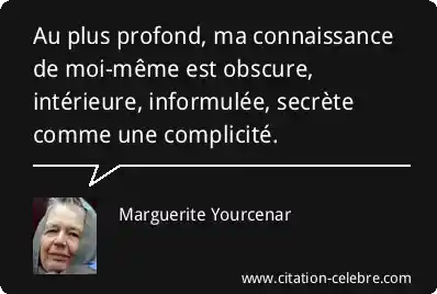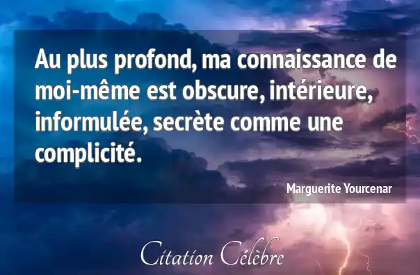 Au plus profond, ma connaissance de moi-même est obscure, intérieure, informulée, secrète comme une complicité.