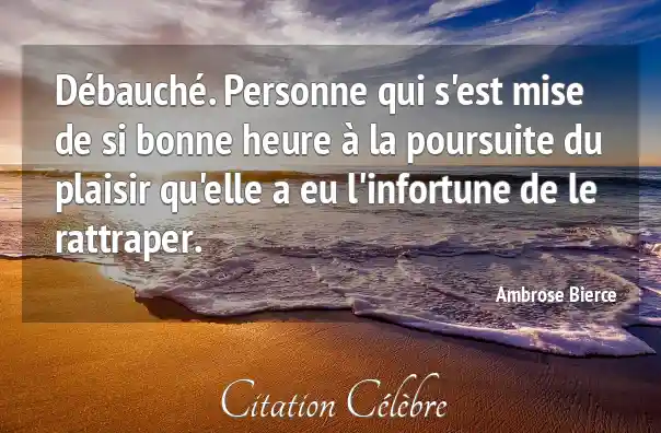 Débauché. Personne qui s'est mise de si bonne heure à la poursuite du plaisir qu'elle a eu l'infortune de le rattraper.