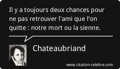 Il y a toujours deux chances pour ne pas retrouver l'ami que l'on quitte : notre mort ou la sienne.