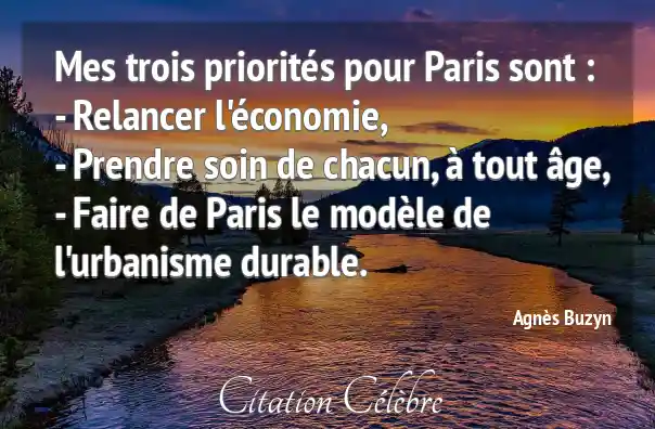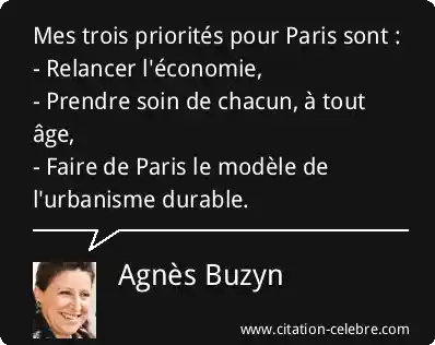 Mes trois priorités pour Paris sont : - Relancer l'économie, - Prendre soin de chacun, à tout âge,- Faire de Paris le modèle de l'urbanisme durable.