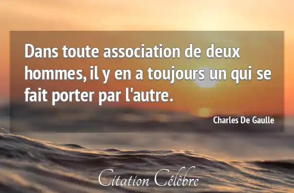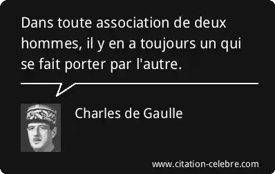 Dans toute association de deux hommes, il y en a toujours un qui se fait porter par l'autre.