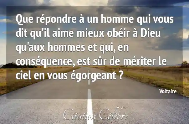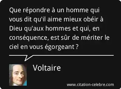 Que répondre à un homme qui vous dit qu'il aime mieux obéir à Dieu qu'aux hommes et qui, en conséquence, est sûr de mériter le ciel en vous égorgeant ?