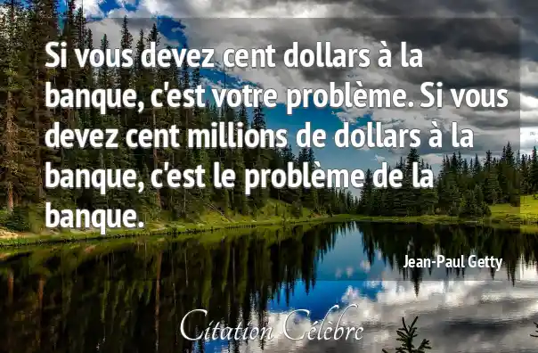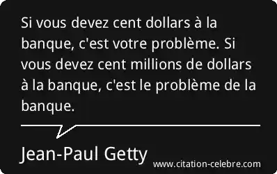 Si vous devez cent dollars à la banque, c'est votre problème. Si vous devez cent millions de dollars à la banque, c'est le problème de la banque.
