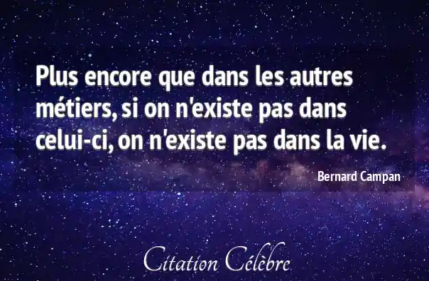 Plus encore que dans les autres métiers, si on n'existe pas dans celui-ci, on n'existe pas dans la vie.