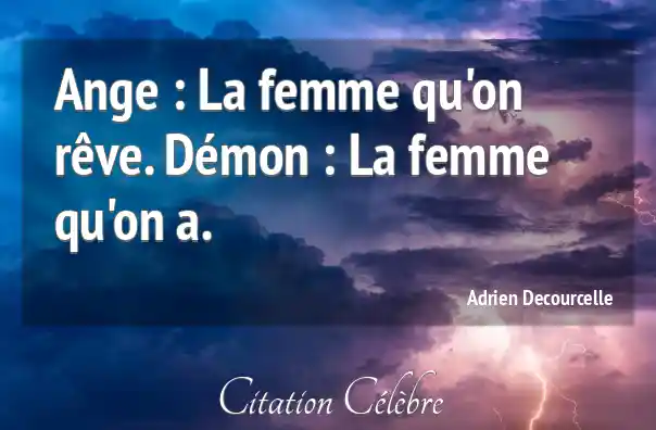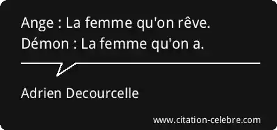 Ange : La femme qu'on rêve. Démon : La femme qu'on a.