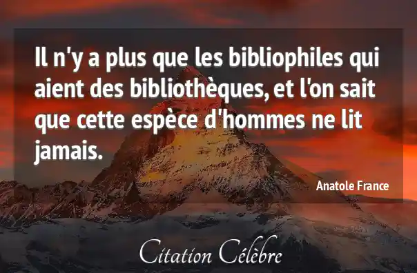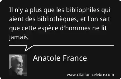 Il n'y a plus que les bibliophiles qui aient des bibliothèques, et l'on sait que cette espèce d'hommes ne lit jamais.