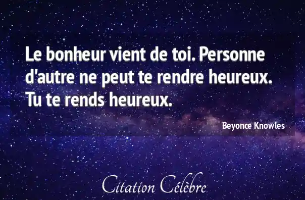 Le bonheur vient de toi. Personne d'autre ne peut te rendre heureux. Tu te rends heureux.