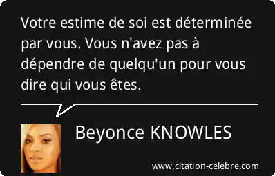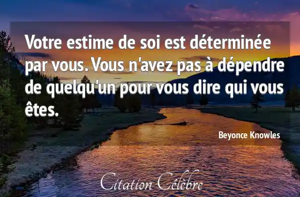 Votre estime de soi est déterminée par vous. Vous n'avez pas à dépendre de quelqu'un pour vous dire qui vous êtes.