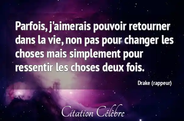 Parfois, j'aimerais pouvoir retourner dans la vie, non pas pour changer les choses mais simplement pour ressentir les choses deux fois.