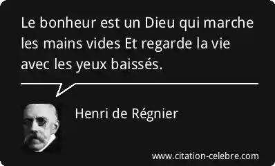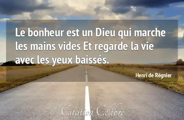 Le bonheur est un Dieu qui marche les mains vides Et regarde la vie avec les yeux baissés.