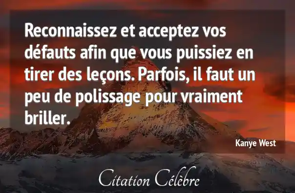 Reconnaissez et acceptez vos défauts afin que vous puissiez en tirer des leçons. Parfois, il faut un peu de polissage pour vraiment briller.