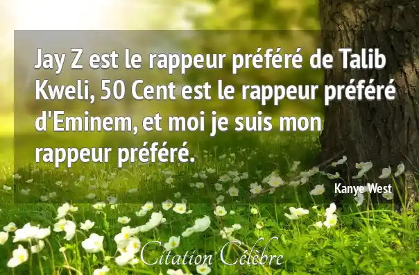 Jay Z est le rappeur préféré de Talib Kweli, 50 Cent est le rappeur préféré d'Eminem, et moi je suis mon rappeur préféré.