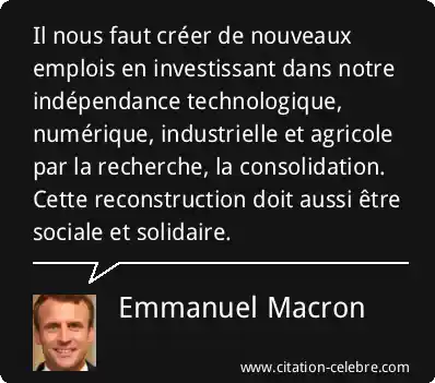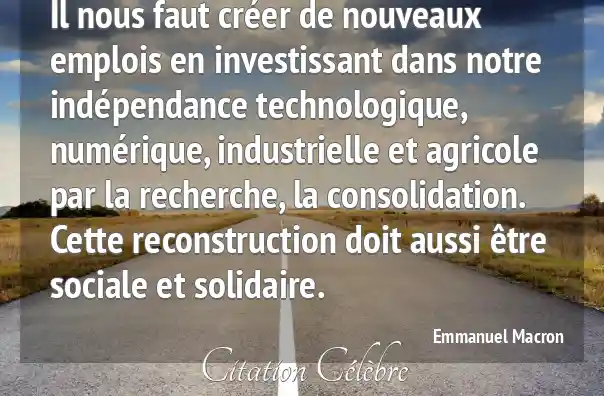 Il nous faut créer de nouveaux emplois en investissant dans notre indépendance technologique, numérique, industrielle et agricole par la recherche, la consolidation. Cette reconstruction doit aussi être sociale et solidaire.