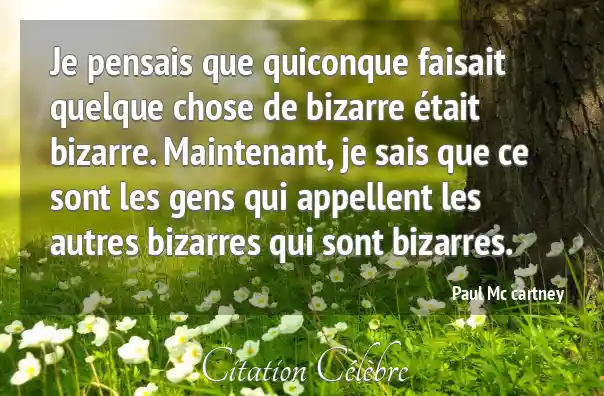 Je pensais que quiconque faisait quelque chose de bizarre était bizarre. Maintenant, je sais que ce sont les gens qui appellent les autres bizarres qui sont bizarres.