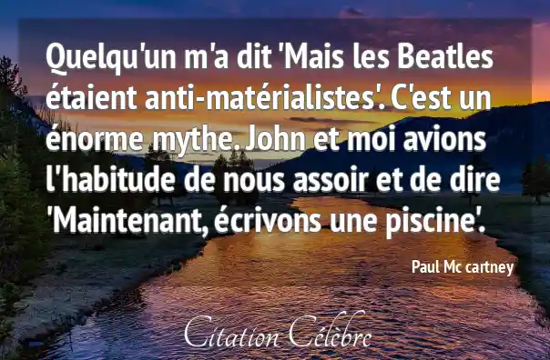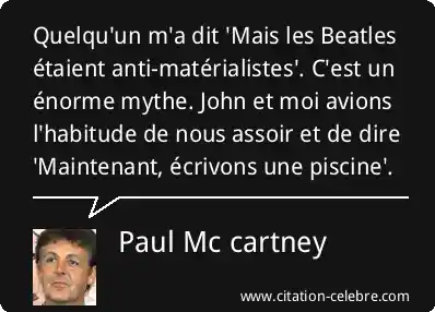 Quelqu'un m'a dit 'Mais les Beatles étaient anti-matérialistes'. C'est un énorme mythe. John et moi avions l'habitude de nous assoir et de dire 'Maintenant, écrivons une piscine'.