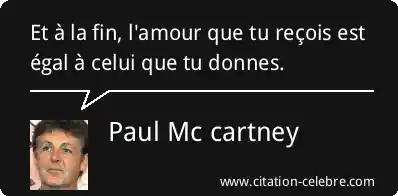 Et à la fin, l'amour que tu reçois est égal à celui que tu donnes.