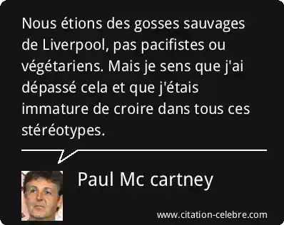 Nous étions des gosses sauvages de Liverpool, pas pacifistes ou végétariens. Mais je sens que j'ai dépassé cela et que j'étais immature de croire dans tous ces stéréotypes.